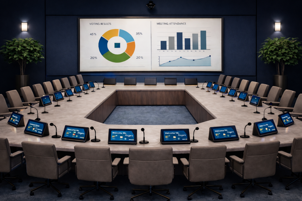 Paperless Conference System transforms meetings into a fully digital and interactive experience. The platform supports paperless agendas, document sharing, voting, attendance tracking, and hybrid conferencing—creating faster decision-making, improved transparency, and a premium meeting experience for corporate, governmental, and institutional environments.
